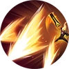 Charges up and unleashes an onslaught. While charging up, he gains crowd control immunity, as well as Movement Speed and Health recovery. If he charges up for over 1s, his Attack Speed increases for 3s and slowly declines over the 3s period.