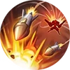 Shoots a heavy round in the target direction, inflicting damage and slow. Upon hitting an obstacle or reaching its max range, it will split into splinters that deal damage. Excited: Increases the number of splinters.